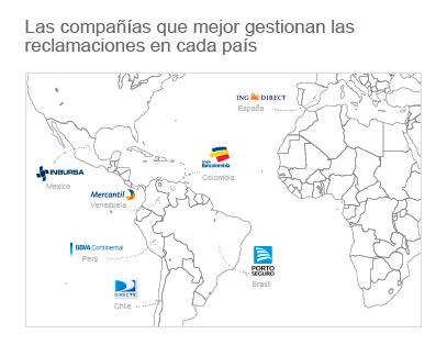Los resultados del estudio, en el que se analizaron las opiniones de más de 12.000 consumidores iberoamericanos, incluyen a cuatro compañías de banca, dos de seguros y una del campo de las telecomunicaciones.