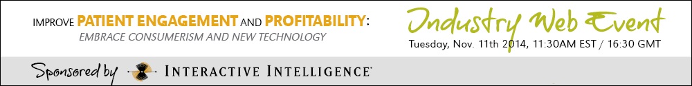 Interactive Intelligence presenta su webinario gratuito en inglés "Mejore el Compromiso y la Rentabilidad del Paciente: Adopte el Consumerismo y las Nuevas Tecnologías", que se realizará el martes 11 de noviembre de 2014 a las 11:30hs. (EST).