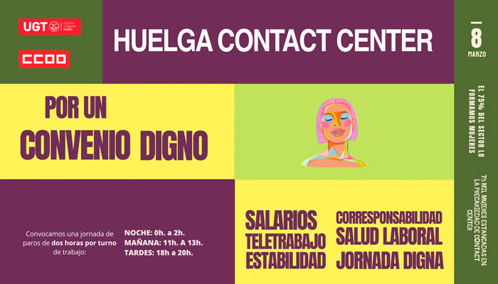 Los servicios de atención a la clientela de grandes energéticas, bancos, empresas de telecomunicaciones, compañías de seguros, administraciones públicas, transportes, etc. son atendidos por empresas de Contact Center que contratan principalmente a mujeres a bajo coste. Podemos cambiar esta situación y hasta que dicho cambio se produzca, desde CCOO seguiremos convocando movilizaciones en el sector.